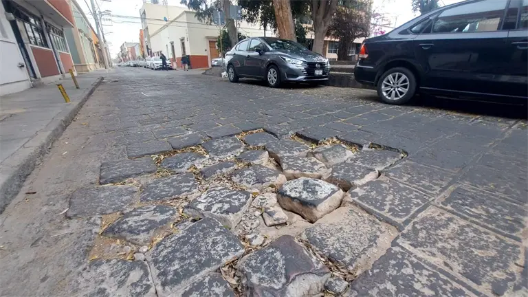 Dentro del primer perímetro del Centro Histórico en San Luis Potosí, se registró la presencia de baches y adoquines sueltos en diversos puntos de alta afluencia vehicular, los cuales, no han sido atendidos por la Unidad de Gestión del Centro Histórico (UGCH) hasta el momento.