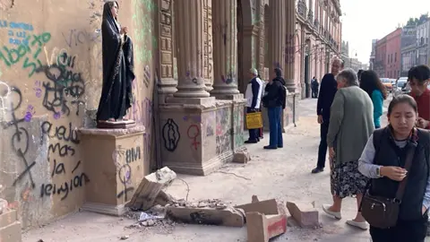 Grupos de mujeres realizaron pintas y causaron destrozos en inmuebles públicos y religiosos.