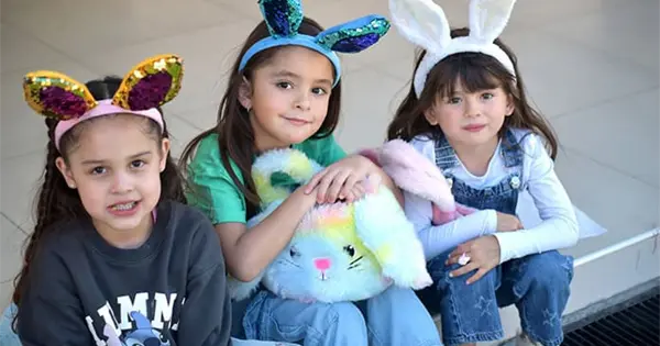 Emocionados, los pequeños se caracterizaron de conejitos, ya que este animalito es un símbolo de fertilidad, nueva vida y renacimiento asociado a la primavera, originado en tradiciones europeas paganas que se integraron a la Pascua cristiana.