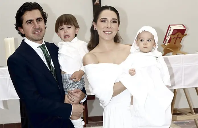 En la celebración religiosa, Guillermo Gómez Gaviño y Michell Cano se encontraban felices con su hijo.